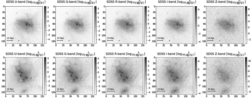 Figure 1 of de los Rios et al. (2023) showing examples of mock photometric SDSS images created as input to the CNN model.